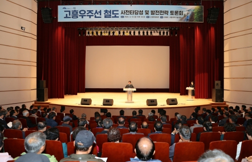 [뉴스서울] 고흥군이 12일 고흥문화회관 김연수실에서 접근성 개선을 위한 교통망 확충계획으로 고흥~벌교~부전을 잇는 ‘고흥우주선 철도건설’을 위한 토론회를 개최했다.