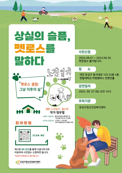 정용래 유성구청장은“이번 강연이 반려동물과의 이별에서 경험할 수 있는 상실에 대한 슬픔을 조금이나마 해소하는 기회가 되길 바란다”며 “앞으로도 주민들이 상실과 우울을 극복할 수 있도록 다양한 정신건강 프로그램을 마련하겠다”고 말했다.