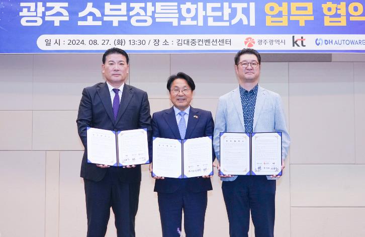 [뉴스서울] 광주광역시는 27일 김대중컨벤션센터에서 광주 자율주행차 소부장(소재‧부품‧장비) 특화단지 성공 추진을 위해 선도기업인 ㈜DH오토웨어, KT와 업무협약을 체결했다.