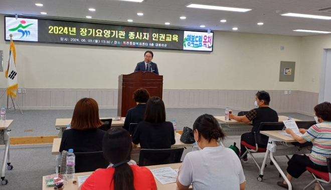 [뉴스서울] 옥천군은 3일 옥천통합복지센터 대회의실에서 장기요양기관 종사자 인권 교육을 실시했다. 본 교육은 장기요양기관 종사자 필수이수 과정으로 충북노인보호전문기관에서 진행했다.