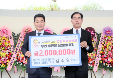 [뉴스서울] 부안군은 변산면 김성호 이장협의회장의 장녀 김소슬 변호사가 고향사랑 기부금으로 200만 원을 기부했다고 26일 밝혔다.