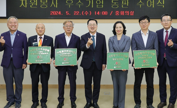 [뉴스서울] 대전시는 22일 시청 중회의실에서 자원봉사활동이 우수한 기업 등 4곳에 2024년도‘자원봉사 우수기업’동판을 수여했다.