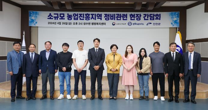 현장 점검에 앞서 실시한 간담회에서는 농림부 농지과장으로부터 소규모 농업진흥지역 정비계획에 대한 설명이 있었으며, 진안, 무주, 장수 청년농업인 등으로부터 현장 의견을 청취하기도 했다.