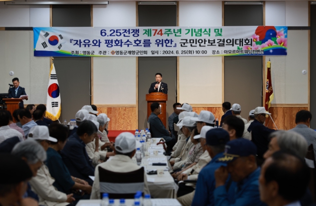 [뉴스서울] 충북 영동군은 지난 25일 6.25전쟁 제74주년을 맞아 영동읍 아모르아트 웨딩컨벤션에서 기념행사를 개최했다.