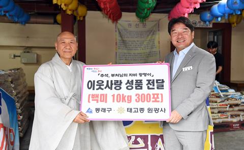 ▲ 태고종 원광사, 동래구에 백미 300포 전달 |