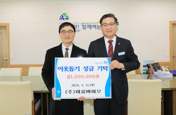 한편, ㈜이룸바이오는 2020년에 설립된 의료용 살충제 전문 기업으로 매년 수익금 일부를 이웃돕기 성금 및 고향사랑기부금으로 기탁하는 등 지역사회 발전과 나눔문화 확산에 꾸준히 기여하고 있다.