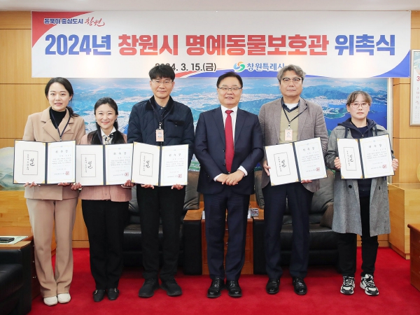 [뉴스서울] 창원특례시는 15일 창원시청 내 접견실에서 민·관 협력의 동물 보호와 감시활동을 위한 명예동물보호관 위촉식을 시행했다고 밝혔다.