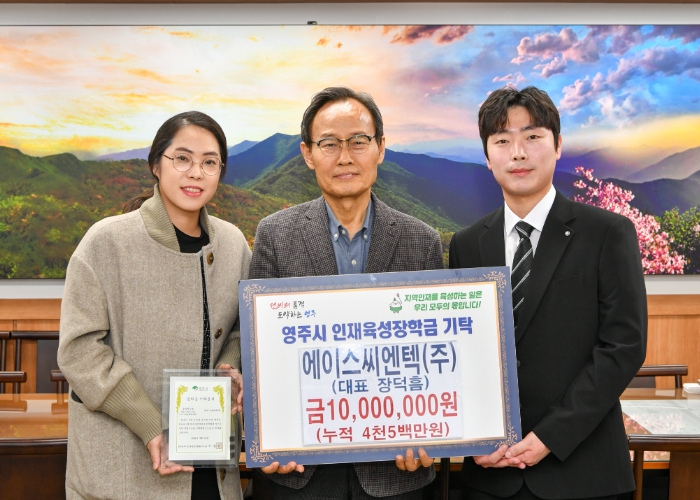 영주시인재육성장학회 박남서 이사장은 “나눔문화 확산과 지역 사랑을 실천하는 에이스씨엔텍(주)의 따뜻한 관심과 성원에 진심으로 감사드린다”며 “지역의 인재로 자라날 학생들에게 큰 힘이 될 것”이라고 감사 인사를 전했다.