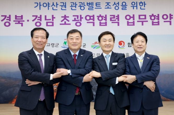 [뉴스서울] 합천군은 지방화시대를 맞이해 지역 주도의 관광 연계협력 사업을 시도하고자 15일 고령군청 대가야홀에서 가야산을 인접한 4개 지자체와 연계한 초광역협력 업무협약을 체결했다.