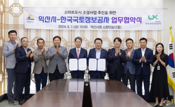 익산시가 7일 익산시청에서 한국국토정보공사(LX) 전북지역본부와 스마트도시 조성 추진을 위한 업무협약(MOU)을 체결했다.