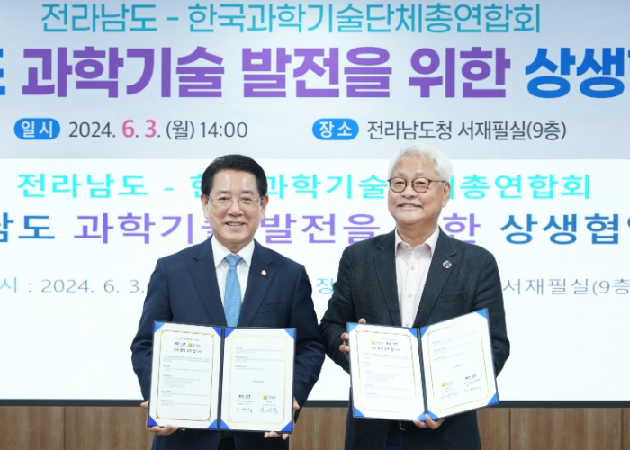 [뉴스서울] 전라남도는 3일 한국과학기술단체총연합회(회장 이태식)와 지역 과학기술발전과 첨단산업 육성을 위한 교류·협력 업무협약을 했다.