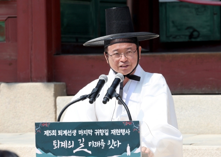 퇴계선생 마지막 귀향길 재현행사는 455년 전(1569년) 음력 3월 4일, 퇴계선생이 선조 임금과 조정 신료들의 간곡한 만류에도 귀향길에 오른 그날부터 안동 도산서원까지 14일간 약 270여㎞를 걸어 내려오신 것을 재현한 행사다.