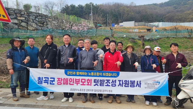 [뉴스서울] 민주노총 공공운수노동조합 경북지역지부 칠곡군청공무직분회는 지난 6일 지역 발달장애인을 위한 다함센터를 찾아 텃밭 조성을 위한 터다지기 자원봉사활동을 실시했다.