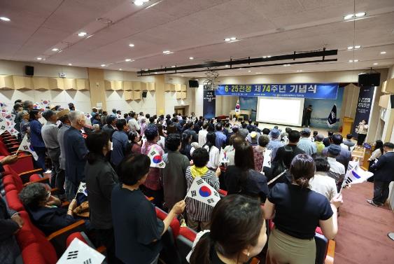 장동석 6.25참전유공자회장은 기념사를 통해 “올해는 6.25전쟁 74주년으로, 자유와 평화를 위해 짧았던 젊음을 조국에 바친 호국영령과 참전용사들의 희생을 잊지 않고 보답할 수 있도록 노력하겠다”라고 전했다.