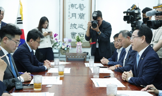 이에 박찬대 원내대표는 “지자체와 사업자의 우려를 충분히 들어 알고 있다”며 “산자위 법안소위에서 지자체의 의견이 최대한 반영되도록 노력하겠다”고 말했다.