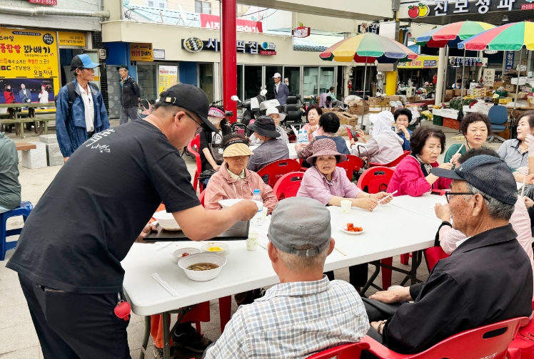 이번 우동 나눔 봉사는 2022년 청송군농업기술센터 시범사업으로 추진한 농가맛집 ‘무꾸’(대표 김경희)의 후원으로 약 600인분의 우동을 준비하여 오전9시부터 시장을 찾은 군민들을 대상으로 무료로 제공됐다.