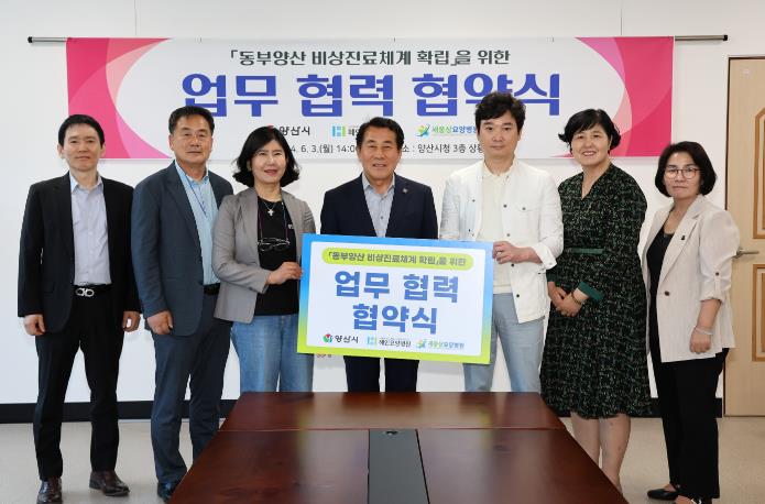 이번 업무 협약식은 의사 집단행동 및 동부양산 응급실 부재에 따른 지역 내 응급의료공백을 최소화하기 위해 협약기관들의 야간 운영시간 연장 등으로 비상진료대책을 구축하여 지역주민들의 생명과 건강을 지키기 위한 목적으로 마련됐다.