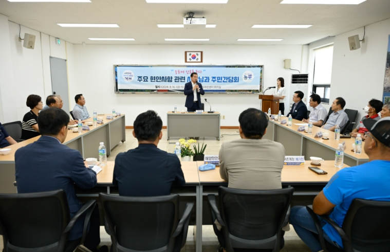 간담회에서는 △능포항 일원 공간활용 방안 마련, △해수부 어촌신활력증진사업 추진, △양지암등대길 출렁다리 조성사업 진행상황, △나잠어업인 쉼터 활용방안 마련, △거제시 파크골프장 조성사업 추진현황 등과 관련해 주민들이 다양한 의견을 건의했고 관련 부서장들의 답변이 이어졌다.