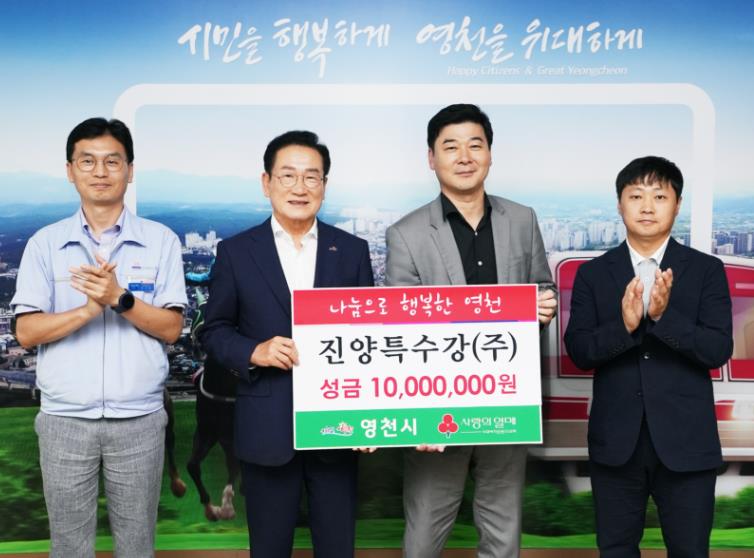 최기문 영천시장은 “나눔을 통해 이웃들에게 희망을 이어주는 진양특수강㈜에 진심으로 감사를 드린다”며 “전해주신 따뜻한 사랑이 어려움을 겪고 있는 이웃들에게 잘 전달될 수 있도록 소중히 사용하겠다”고 말했다.