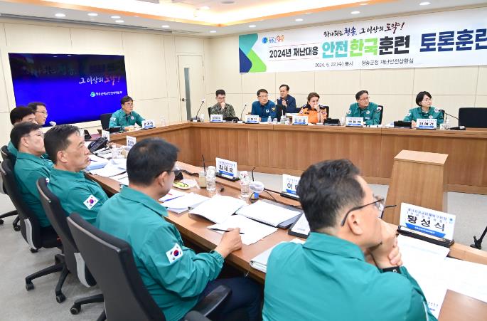 토론훈련은 군청 재난안전상황실에서 윤경희 청송군수의 주재로 진행되었으며 상황판단회의에 이어 재난안전대책본부 실무반별 주요 임무와 조치사항에 대하여 심도있게 토론을 실시하였다.
