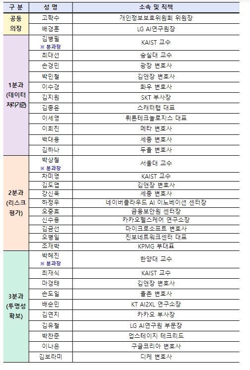 ▲ 「AI 프라이버시 민·관 정책협의회」 위원 명단 |