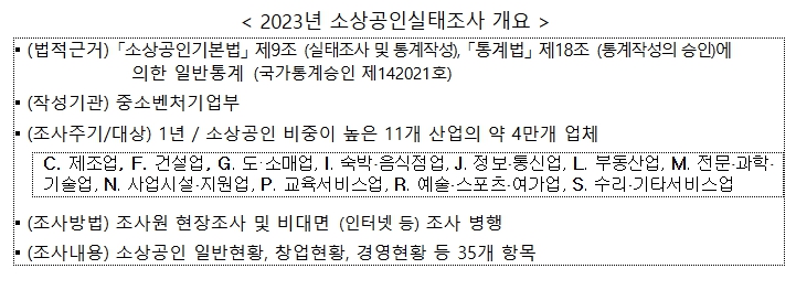 중기부는 올해 3월 확정결과가 나오면, 이를 소상공인·자영업자 지원정책 수립의 참고자료로 활용할 예정이다.