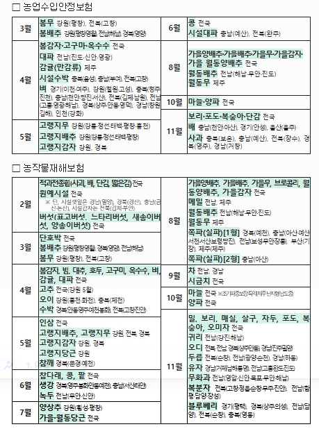 | ▲ 2026년 농작물보험 판매 일정 |