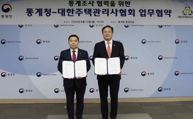[뉴스서울] 통계청과 대한주택관리사협회(회장 하원선)는 2024년 6월 10일 정부대전청사에서 공동주택 대상 통계조사 협력을 위한 업무협약(MOU)을 체결했다.