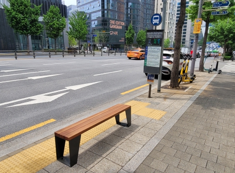 ▲ “이제 앉아서 기다리세요!” 강남구, 마을버스 정류소에 의자 설치 |