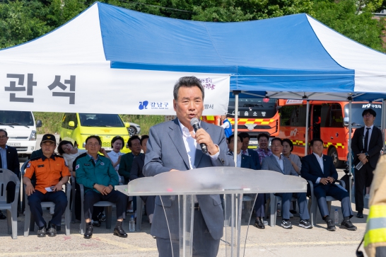 현장훈련을 마치고 김형대 의장은 “재난 대응 훈련은 구민들의 소중한 생명과 재산을 보호하는 데 그 목적이 있는 만큼 이번 훈련이 재난 대응 능력을 향상시켜 안전한 강남 만들기에 일조하기를 기대한다”라며, “훈련을 위해 힘써주신 유관기관 관계자 분들께 감사드리며, 의회에서도 안전한 강남 만들기에 적극 협조하겠다”라고 격려했다.