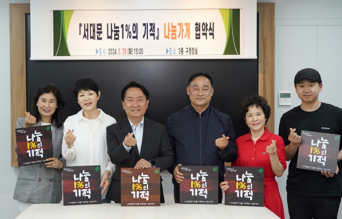 [뉴스서울] 서대문구는 최근 구청장실에서 충현동상가번영회(12개 업소), 8호점 ㈜디자인글로리아(홍제3동), 35호점 린나이서대문대리점(연희동), 36호점 홍제안경콘택트(홍제3동), 39호점 신진전기조명(홍은2동), 49호점 칠구네신림동백순대(홍은2동)와 ‘서대문 나눔1%의 기적’ 협약을 체결했다고 31일 밝혔다.