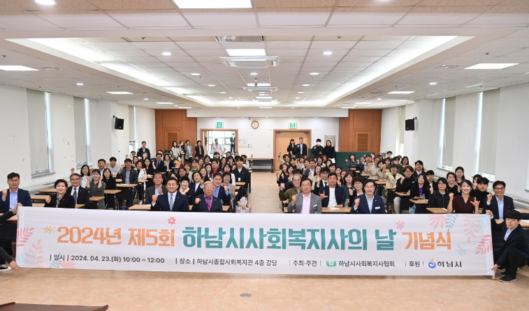 이번 행사에는 이현재 하남시장, 강성삼 하남시의회 의장 및 시의원, 박찬수 경기도사회복지사협회장을 비롯한 많은 내빈과 사회복지사 150여 명이 참석한 가운데 유공자 표창, 사진 공모전 시상 등 순으로 이어졌다. 추미애 제22대 국회의원 당선인은 축전으로 축하의 인사를 전했다. 또한, 경기아트센터 ‘찾아가는 문화복지공연’의 벨 싱어즈 성악팀이 수준 높은 공연을 펼치며 사회복지사들의 노고를 위로했다.