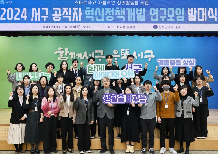 [뉴스서울] 서구만의 차별화된 혁신 정책 발굴을 위해 구청 공직자들이 뭉쳤다. 광주광역시 서구는 28일 들불홀에서 서구 공직자 혁신정책개발 연구모임 발대식을 개최하고 모임별 활동 방향과 연구주제 등을 발표·공유하는 시간을 가졌다.