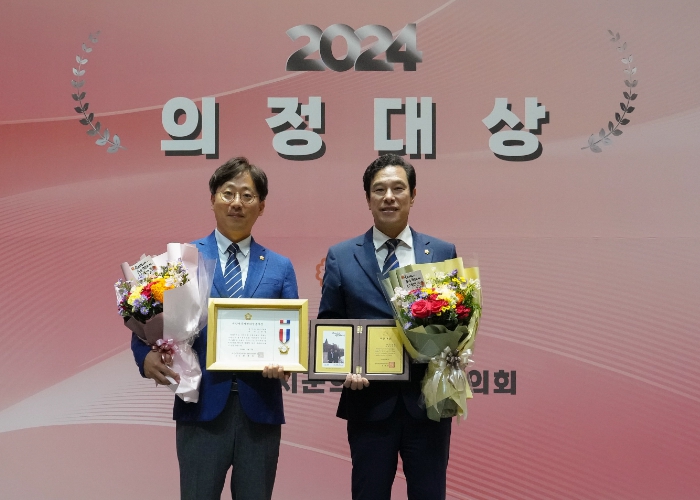 | ▲ 6월 7일 ‘제15기 경기도시군의회의장협의회 특별공로패’와 ‘대한민국 지방의정봉사상’을 수상한 강성삼 의장(사진 오른쪽)과 오승철 의원. (사진_하남시의회 제공) |