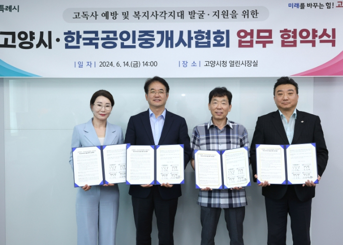 [뉴스서울] 고양특례시는 14일 시청 열린시장실에서 한국공인중개사협회 3개구(덕양구, 일산동구, 일산서구) 고양지회와 복지사각지대 발굴 체계 구축을 위한 업무협약을 체결했다고 밝혔다.