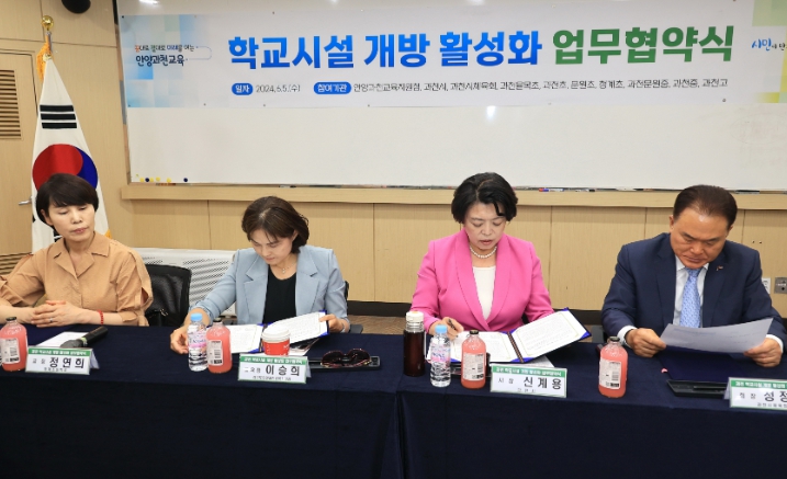 [뉴스서울] 과천시는 5일, 시민회관 강좌실에서 ‘학교시설 개방 활성화’를 위한 업무협약을 체결했다.