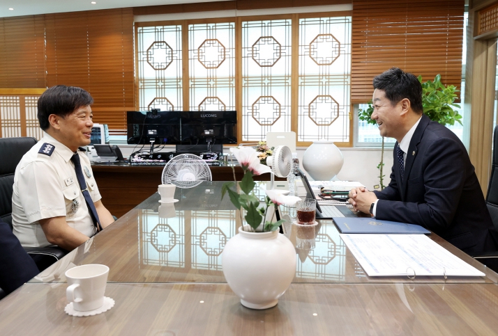 ▲ 경기도의회 김진경 의장, 30일 조선호 경기도 소방재난본부장 접견 부천 호텔화재 등 대형 화재사고 예방활동 강화 당부 |