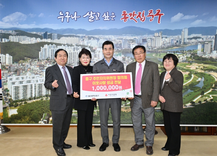 | ▲ 중구 주민자치위원장 협의회, 이웃돕기 후원금 100만 원 전달 |