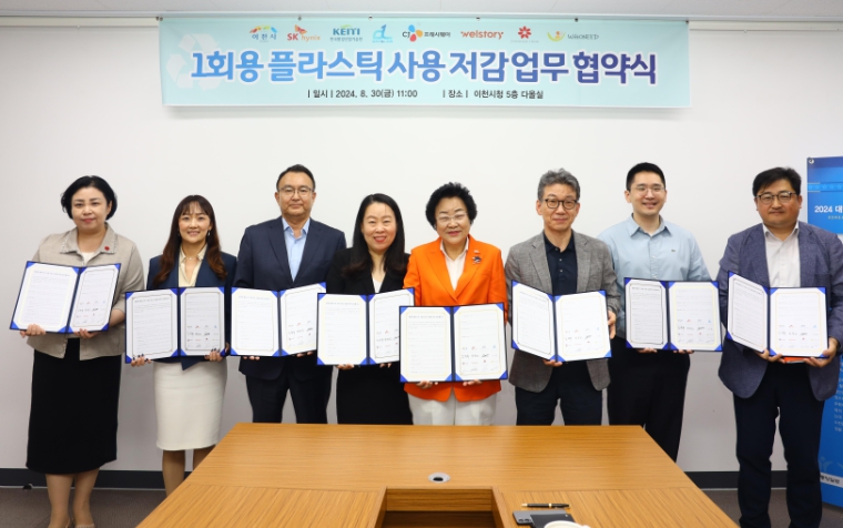 [뉴스서울] 이천시는 지난 30일 한국환경사업기술원, SK하이닉스㈜, ㈜더데이원랩, ㈜신세계푸드, 삼성웰스토리(주), 씨제이프레시웨이(주), ㈜후니드와 일회용 플라스틱 사용 감소를 위한 업무협약을 체결했다.