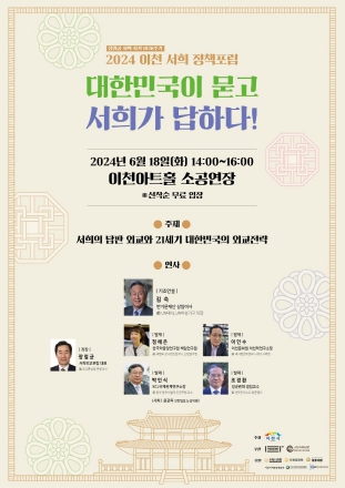 이천시는 오는 6월 18일 오후 2시~4시, 약 두 시간 동안 이천아트홀 소공연장에서 ‘서희의 담판외교와 21세기 대한민국의 외교전략’이란 주제를 내걸고 '2024 이천 서희 정책포럼'를 개최한다.