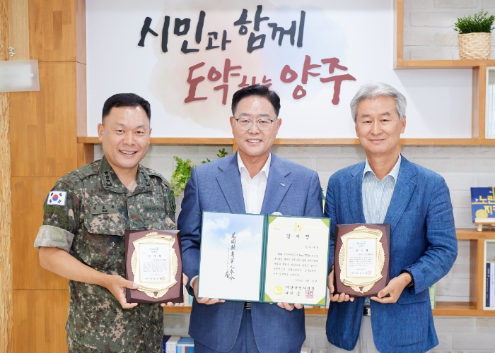 [뉴스서울] 시에 따르면 양주시가 6일 오전 양주시청을 방문한 지상작전사령부, 민·관·군 상생발전협의회에게 감사장 전달했다고 밝혔다.