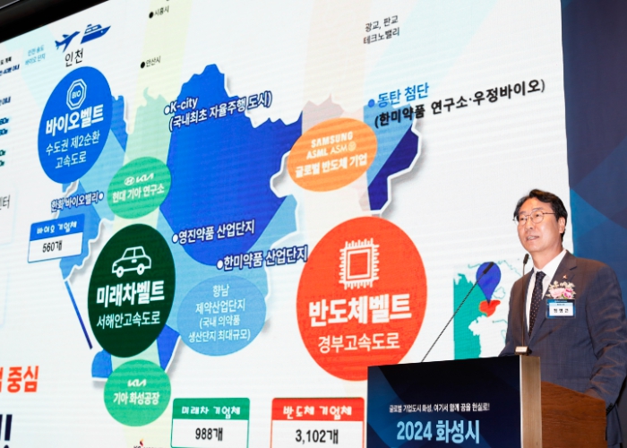 설명회는 정명근 시장의 기업하기 좋은 화성시 소개를 시작으로 ▲수원-화성-용인-평택-천안으로 이어지는 경부 라인의 첨단 반도체 메가클러스터 ▲광명-화성-평택-광주로 연결되는 서해안 K-미래차 밸리 ▲인천 송도-시흥-화성을 잇는 K-바이오 벨트의 중심 거점인 화성시의 권역별 투자유치 전략을 발표하고 7개 기업·기관과 투자유치를 위한 상생협력 협약을 체결했다.