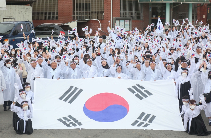 태극 페이스페인팅 체험과 포토존 운영, 독립선언서 낭독, 대형태극기 연립행진, 3.1만세운동 기념식 순으로 일제 강점기에 자주독립을 외친 선열들의 숭고한 희생정신을 기념했다.