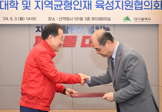 홍준표 대구광역시장은 “지역사회와 대학이 상생 발전하기 위해서는 대학이 지역혁신의 핵심 동력이 되고, 청년 인재 유출을 막기 위한 역할을 할 수 있도록 대구시와 대학 간 협업체계 구축 및 상호협력이 필요하다”며, “대학이 양성한 우수한 인재가 지역에서 취업하고 정착할 수 있도록 시정 역량을 집중하겠다”고 말했다.