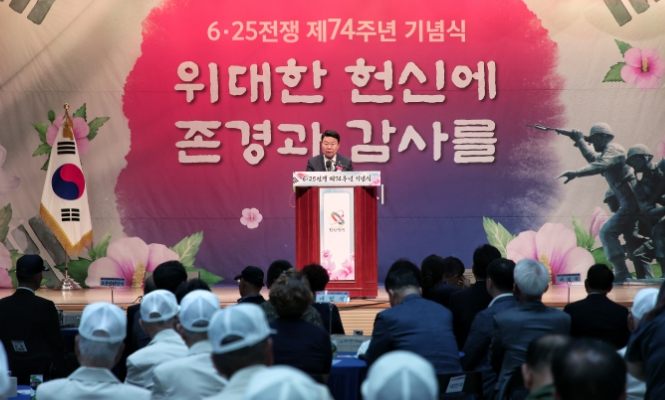 [뉴스서울] 당진시는 25일 당진시종합복지타운에서 호국영웅들의 위대한 헌신을 기리기 위해 ‘6·25전쟁 제74주년 기념식’을 개최했다.