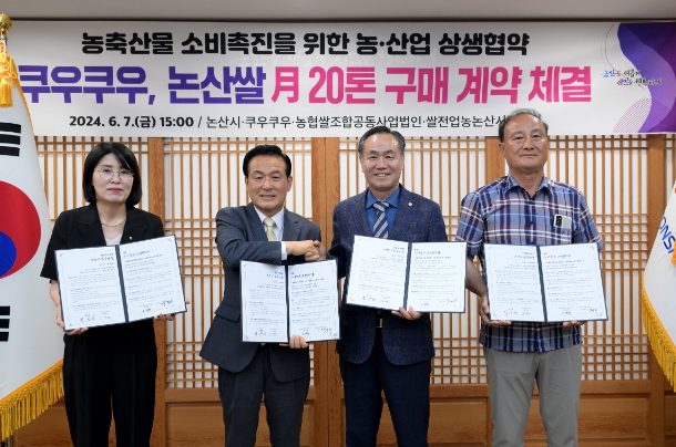 7일 열린 이 계약을 통해 농협쌀조합공동사업법인은 매월 논산쌀을 쿠우쿠우로 납품하게 된다.