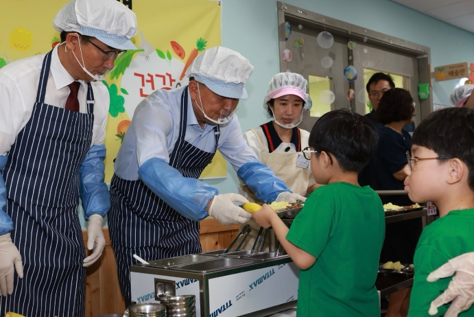 인상에 따른 개선된 어린이집 급식 환경을 점검하고, 양 기관의 상호 협력 체계 강화를 위해 양 기관장이 직접 배식도우미 활동을 진행했다.