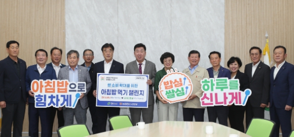 이 시장은 이날 오전 임시청사 직지실에서 농협충북본부, 농협청주시지부, 지역농협조합과 함께‘라이스모닝·나이스모닝 아침밥 먹기 챌린지’에 동참했다.