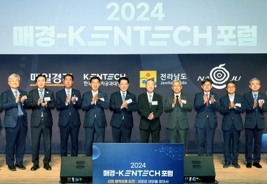 ▲ 김영록 전라남도지사가 4일 켄텍 대강당에서 열린 2024 매경·켄텍 포럼에서 주요 내·외빈들과 기념촬영을 하고 있다. |