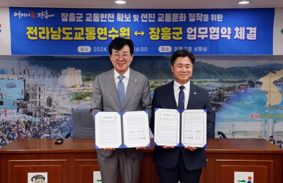 [뉴스서울] 장흥군은 지난 8일 장흥군청 2층 상황실에서 전라남도교통연수원과 교통안전 증진을 위한 업무협약(MOU)을 체결했다.
